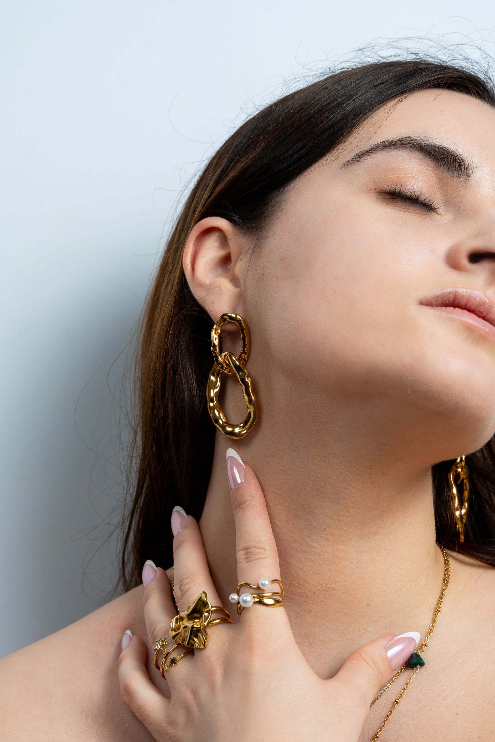 Les boucles d'oreilles Emy, bosselées et légères, qui allient élégance et originalité.